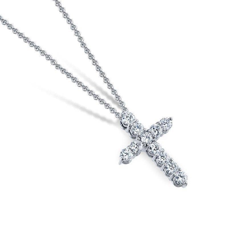 Custom made diamond cross featuring 1.76 carats total weight in diamonds in a platinum setting with a 1.8mm round cable chain adjustable from 16-18"